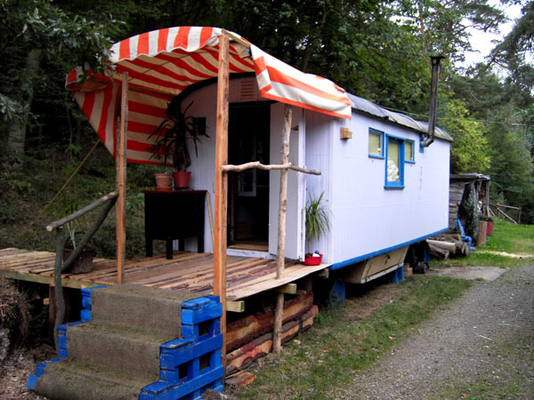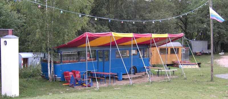 Fünfmal schlich ich um den Mini herum, dann kam Katharina. Irm war da. Sie freute sich, alles war unkompliziert, wir saßen in einem Kleinwagen, etwa wie der für 50 Westmark, nur mit gängigem Getriebe. Wir fuhren mit 120 über die Hunsrückhöhenstraße, eine Westversion des Rennsteiges in Thüringen. Kamen an auf einem Gelände, das mit Wald umgeben war und dann passierte etwas, das bis heute in mein Leben hineinreicht. Nicht nur, dass wir in einer Art Katharsis aufeinander prallten – Leute aus dem Osten, regimehörig und regimekritisch; es begann etwas, das ich heute zu den positivsten Ereignissen der Wende zähle. Ich lernte hier ad hoc Freunde kennen: molo, Gisela, Kai, Wilfried (der beste Koch auf dem Gelände!) und den unvergleichlichen Jacky5, die „Berliner Hütte“ als Schlupfwinkel deutsch-griechischer Seelen. Die Bouzouki hing zwar nicht als Galionsfigur über der Tür, aber sie hing daneben. Ich aß das erste Mal vegetarisch und überfraß mich dreimal am Tage. Sah das erste Mal Vater Rhein und Mutter Mosel. Hörte das erste Mal ein Dutzend deutsche Dialekte gleichzeitig. Nippelte Bio-Wein dazu. Aber das Größte: hier gab’s vegetarische Leberwurst. Hørbi brachte sie mit und bot sie feil, irgendwie hatte seine Frau Karin einen Bioladen mit Produkten, die keine Halbwertzeit besaßen.