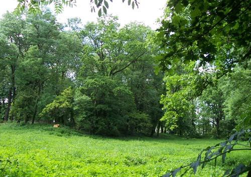 Insel auf der Insel. Blick vom Rand. Die Wiese ist der eigentliche Teich, der bei Schnauderhochstand geflutet werden kann.