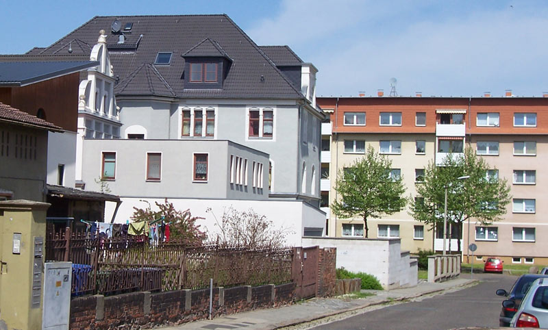 Davor stand das Jugendklubhaus, an dieser Stelle steht heute etwas von der Heimer-Pilz-Straße abgerückt eine Kinderarztpraxis. Aber damals hieß das Sträßchen wohl Dimitroffstraße. Ich bin mir nicht sicher.