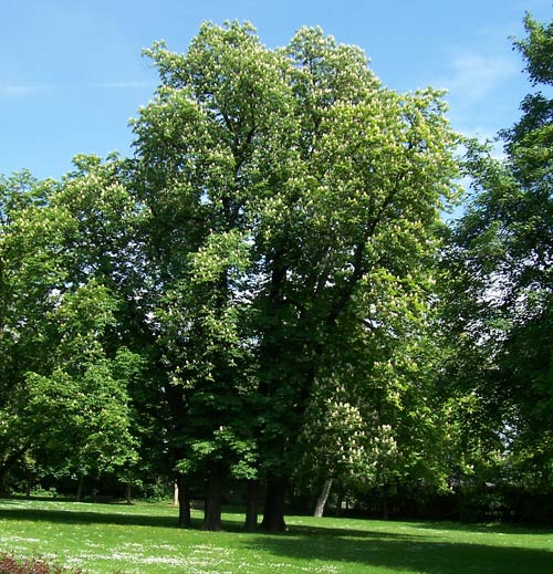 Sie stehen und blühen immer noch und werfen im Herbst ihre Kastanien aus.