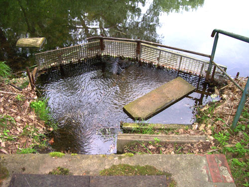 Aber der See birgt einige seltsame Geheimnisse. Er ist künstlich angelegt und man sieht es: der äußere Wall fällt zu Feld und Wald tiefer ab als zur Wasserfläche. Selbst auf der Luftaufnahme kann man die Wulst erkennen. Dazu gibt es noch einen Überlauf, der in der Schnauder mündet an der „Insel“. Die Gartenanlage „Am Ententeich“ hat in den 70ern eine Abzapfstelle eingerichtet, damit man das Trinkwasser nicht zum Gießen nimmt: auf dem Hauptweg ist eine Handpumpe.