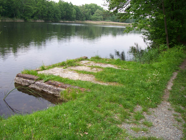 Vom Pumpenhaus führte die Brücke und die daran befestigten Rohre bis zur Seemitte. Dort saugten sie das Wasser an. Da das Gerüst fast drei Meter hoch war, war es eine beliebte Absprungstelle. Natürlich mit der Gefahr verbunden, daß man vom Sog an die Rohre angesaugt wird. Wir spielten Mutprobe: Wer wagt sich dorthin zu tauchen. Es hat niemand gemacht. Und es ist mienanden etwas passiert. Aber der Kitzel wars. Noch mehr, wenn der Pumpenwärter uns schimpfend verjagte...
