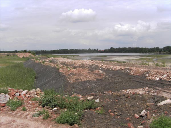 Bild von 2006: Errichtung der Klärbecken mit dem Schutt des Phönix