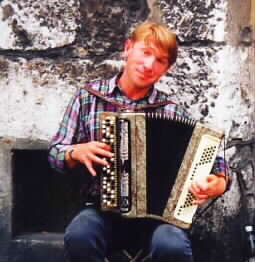 Zum Foto: Straßenmusiker aus der Ukraine. Zwischen Melancholie und Virtuosität. Nicht im offiziellen Programm. Aufgenommen zum Internationalen Straßentheaterfestival Krakau 2000.