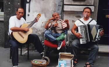 Zum Foto: Was auch angesagt war - sie machten schon immer, was sie für richtig hielten. Die Zigeunerband habe ich bei jeder meiner Krakau-Visiten auf dem Markt oder in der Nähe gesehen. Nicht im offiziellen Programm - dafür aber omnipräsent. Zigeunermusik vom Feinsten. Das Foto wurde aufgenommen zum Internationalen Straßentheaterfestival Krakau 2000.