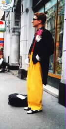 Zum Foto: Farbig, aber rechtlos - wie die polnische Presse. Solcherlei Stehmännchen findet man in allen Fußgängerzonen Europas. Nicht im offiziellen Programm. Aufgenommen zum Internationalen Straßentheaterfestival Krakau 2000.