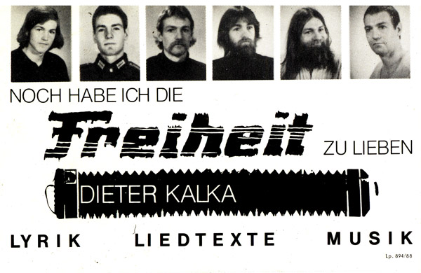 Ich sollte noch mehr Glück haben. Wer mir die Adresse in der Brockhausstraße gab, weiß ich nicht mehr. Das war die Edel-Druckerei in Leipzig und sie machten eigentlich nur die Andrucke von Fotobänden. Also mal zehn Stück, aber höchstens. Die Kleinst-Auflage (die gar nicht so klein war) von 400 Plakaten, dazu Werbekarten, Postkarten und Kassettencover (das hatte ich nebenbei auf dem Druckgenehmigungsantrag erwähnt) machten sie für mich in einer 1-A-Qualität und wenn es in der ganzen DDR kein richtiges Schwarz gab, mein Schriftzug "Freiheit" war schwarz wie der Essenkehrer. Und wer ganz genau hinschaut, das zweite Bildchen ist ausm Wehrpaß rausgerissen und oben sieht man das, weil der Wehrstempel das Foto eingerissen hat. Aber der Drucker, genau und fleißig wie ein deutscher Handwerker, retuschierte es.