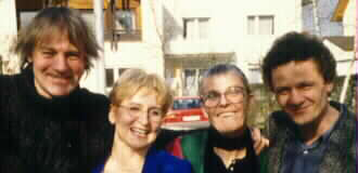Marta Fox, Marek Sniecinski, Tina Strohecker und ich, hier in der Eßkabine des Schiffes.