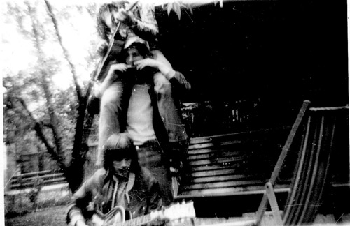 Unten Wolfgang Loeser, Mitte ich. Unsre Musiklehrerin, die "wilde Hilde mit der Sexbluse" (ihr Spitzname; sie war um die 60 mit `ner Stimme wie `ne Fliegeralarmsirene und so hübsch, daß wir immer einen Meter vorbeisahen) wollte uns für `ne Singegruppe rekrutieren. Wir bildeten eine eigene und unser erster Auftritt zu einer Gedenkveranstaltung wurde mit Zugabenforderung honoriert. Nur, wir sangen einen englischen Titel - wir mußten nie wieder auftreten - in der Schule.